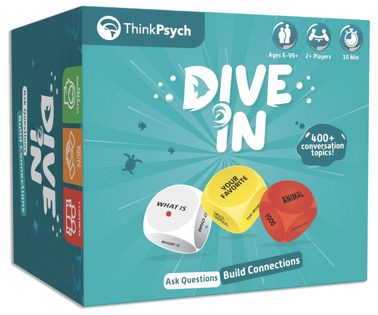 Dive In is constructed round a easy however highly effective idea: nice conversations construct sturdy relationships and robust language abilities. Gamers roll colourful cube that generate prompts and subjects, then reply questions that vary from playful icebreakers to extra considerate reflections. With greater than 400 distinctive dialog prompts, each spherical feels contemporary and unpredictable.