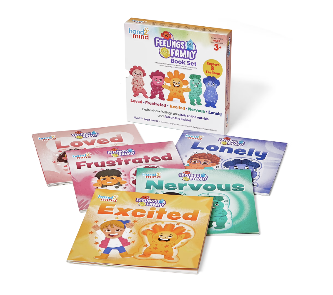 Emotions Household Core Feelings E book Set helps younger youngsters perceive 5 foundational feelings—joyful, offended, unhappy, shocked, and scared—via wealthy, accessible language. Every e-book bridges concrete, observable experiences with the extra summary emotional ideas youngsters are studying to acknowledge and categorical. This pairing is important: youngsters usually perceive emotions first via what they will see, hear, or really feel of their our bodies, and these books give them the phrases to attach these sensations to the bigger emotional world round them.
