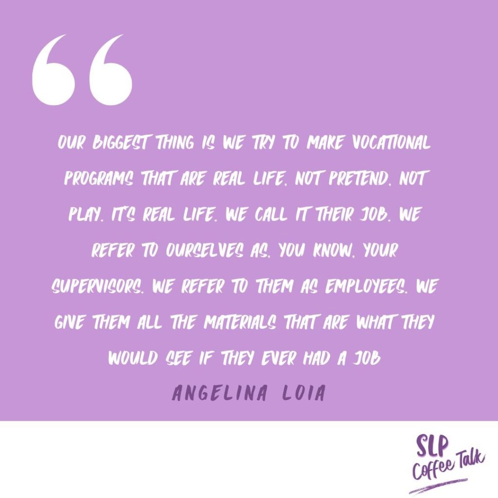 00:01:57 Hallie: Hey, hey, and welcome to a different episode of SLP Espresso Speak. Do you’ve got life expertise college students in your caseload? Are you searching for extra methods to work on vocational coaching in your on a regular basis speech actions? I do know you are going to love this dialog that I’ve with my visitor right here as we speak, Angela Loia. Welcome to the present.